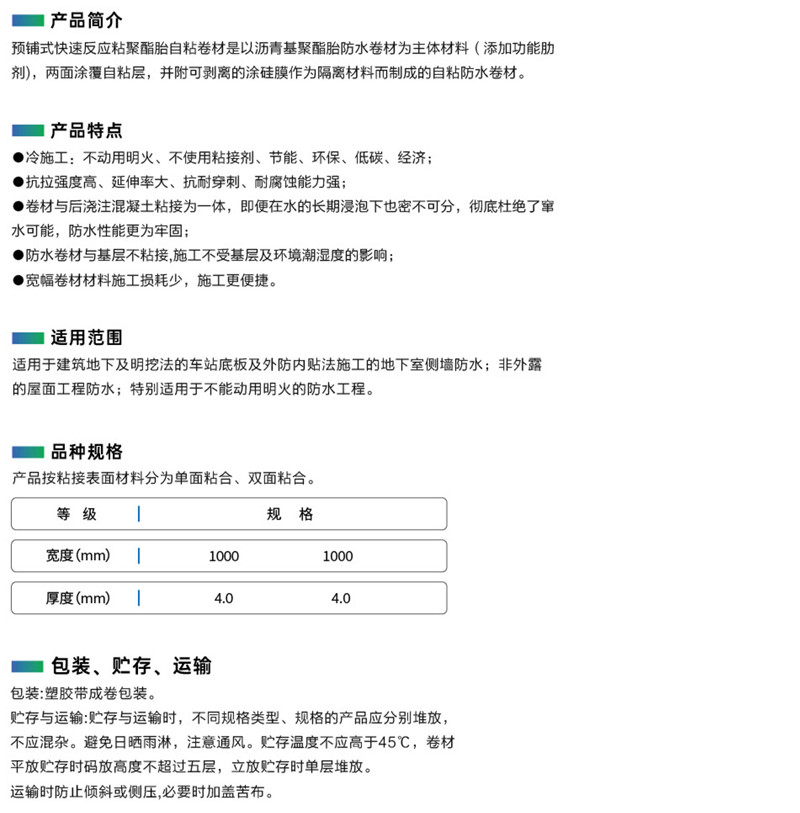預(yù)鋪式快速反應(yīng)粘聚酯胎自粘卷材