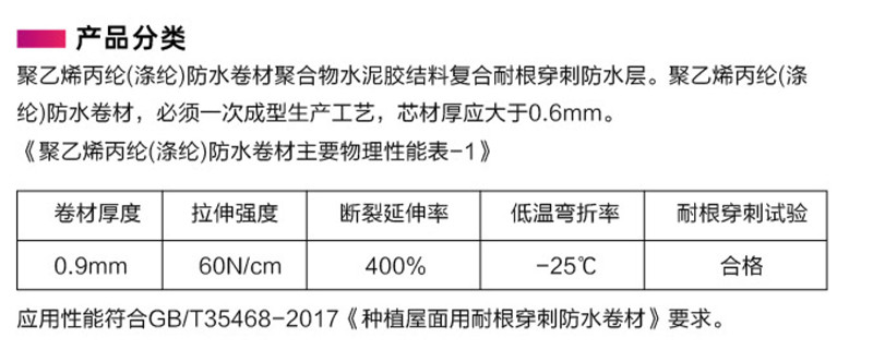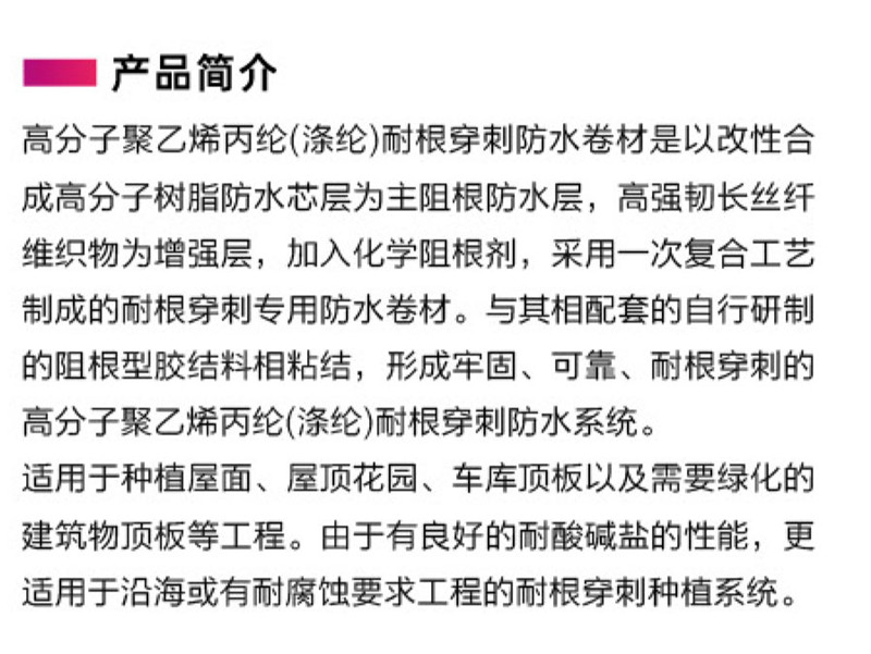 耐根穿刺高分子聚乙烯丙(滌)綸防水卷材