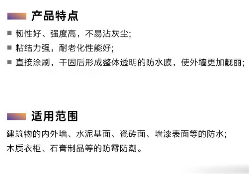 您現(xiàn)在的位置:首頁 > 產(chǎn)品中心 > 防水涂料 > 高檔純丙耐候外墻透明膠