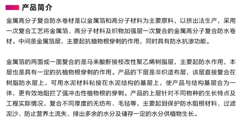 耐根穿刺金屬胎高分子防水卷材